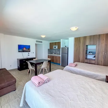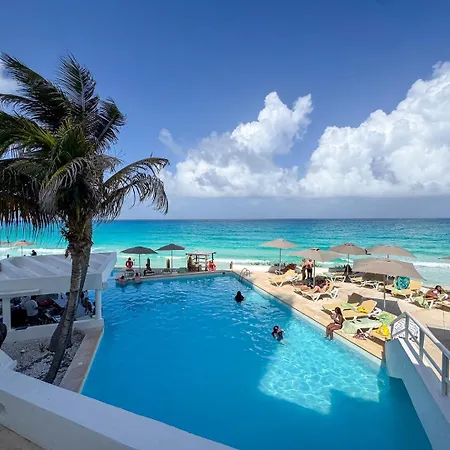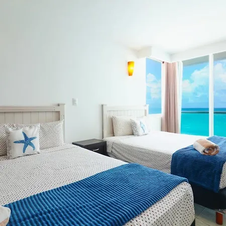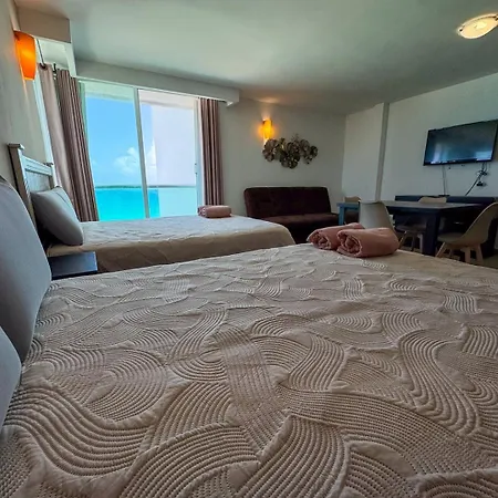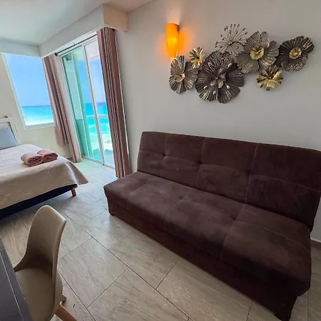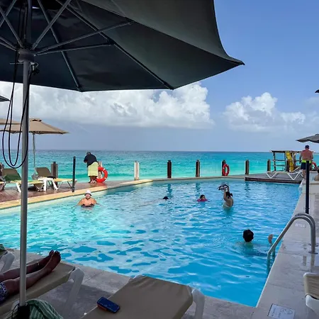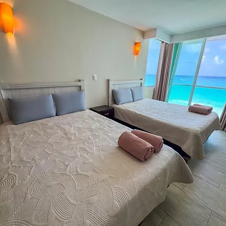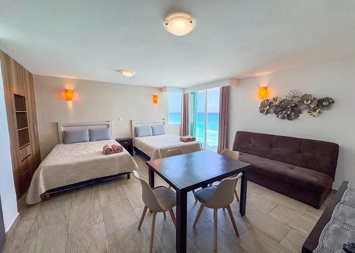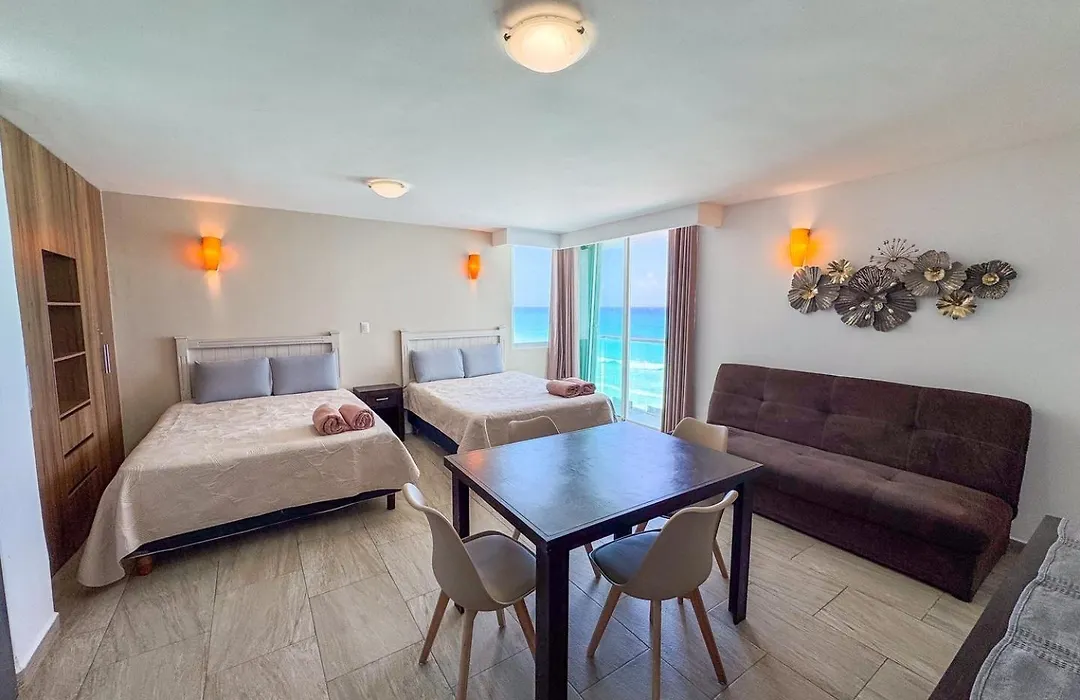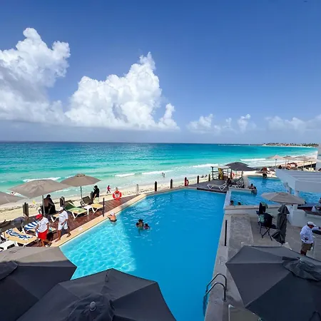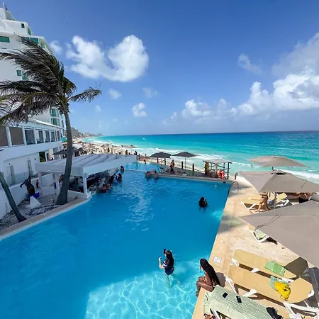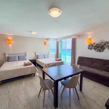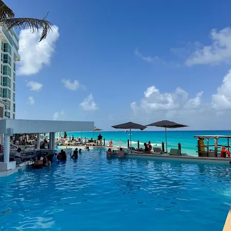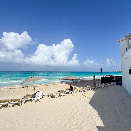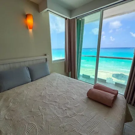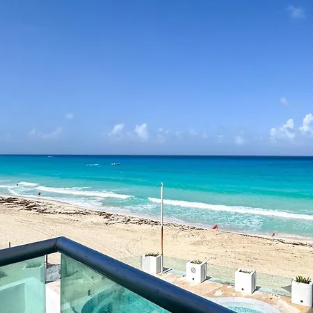 Staying at Oceanfront W/Balcony, Pool & Beach Access Cancun apartment, guests can reach the sand Playa Delfines Beach, situated 17 minutes' stroll away.